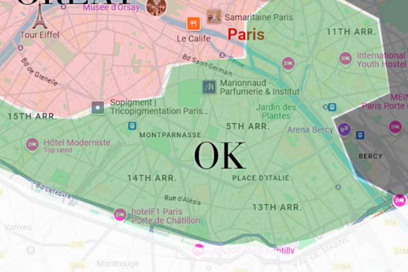 For example, you can tell that a hotel is in Paris just by looking at its postal code: